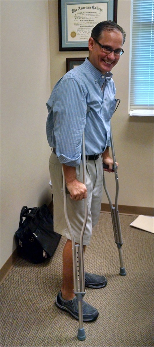 Years of intense soccer have caught up with our Managing Partner, Scott Winslow. Scott returned to work full time Monday, August 24th, 2015 using crutches after a successful knee surgery on Friday, August 14th. A complete recovery is expected!